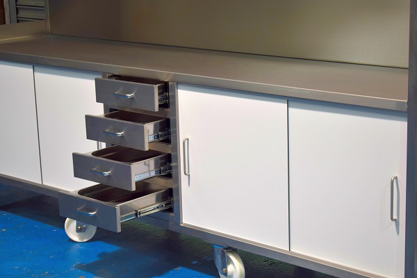 The mobile laboratory was designed around the specific needs of the customer and incorporated: